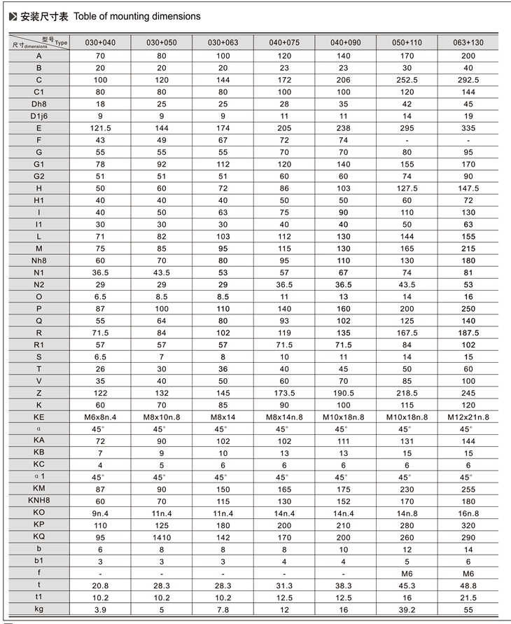 4、輸出軸直徑分為?18、?22、?28、?32、?40、?50六種規格;